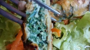 - Em uma panela refogue a cebola e o espinafre bem picados.