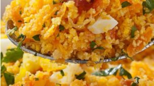 - Sirva com um prato de carne ou se preferir, misture ovos ou carne desfiada na preparação.